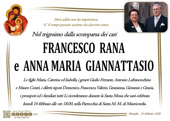 Trigesimo lunedì 16 febbraio 2026
