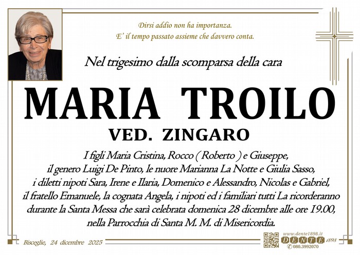 Trigesimo domenica 28 dicembre 2025