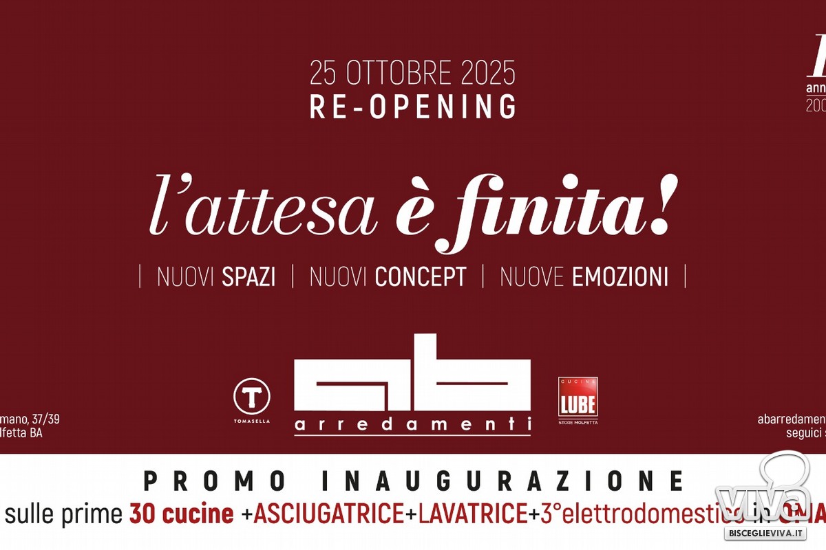 Per celebrare la nuova apertura, AB Arredamenti offrirà una promozione imperdibile: ai primi 30 clienti che acquisteranno una cucina nei giorni dedicati all'inaugurazione sarà riservato uno sconto speciale del 50%, oltre a un omaggio esclusivo composto da lavabiancheria, asciugatrice e un terzo elettrodomestico a scelta tra friggitrice ad aria o impastatrice.Inoltre, chi acquisterà una camera da letto completa o un living del valore superiore a €3.000 riceverà in regalo un materasso matrimoniale o una TV da 50 pollici.