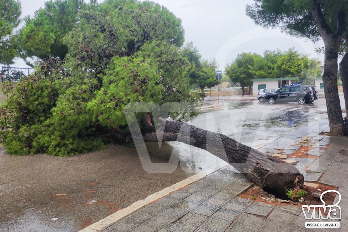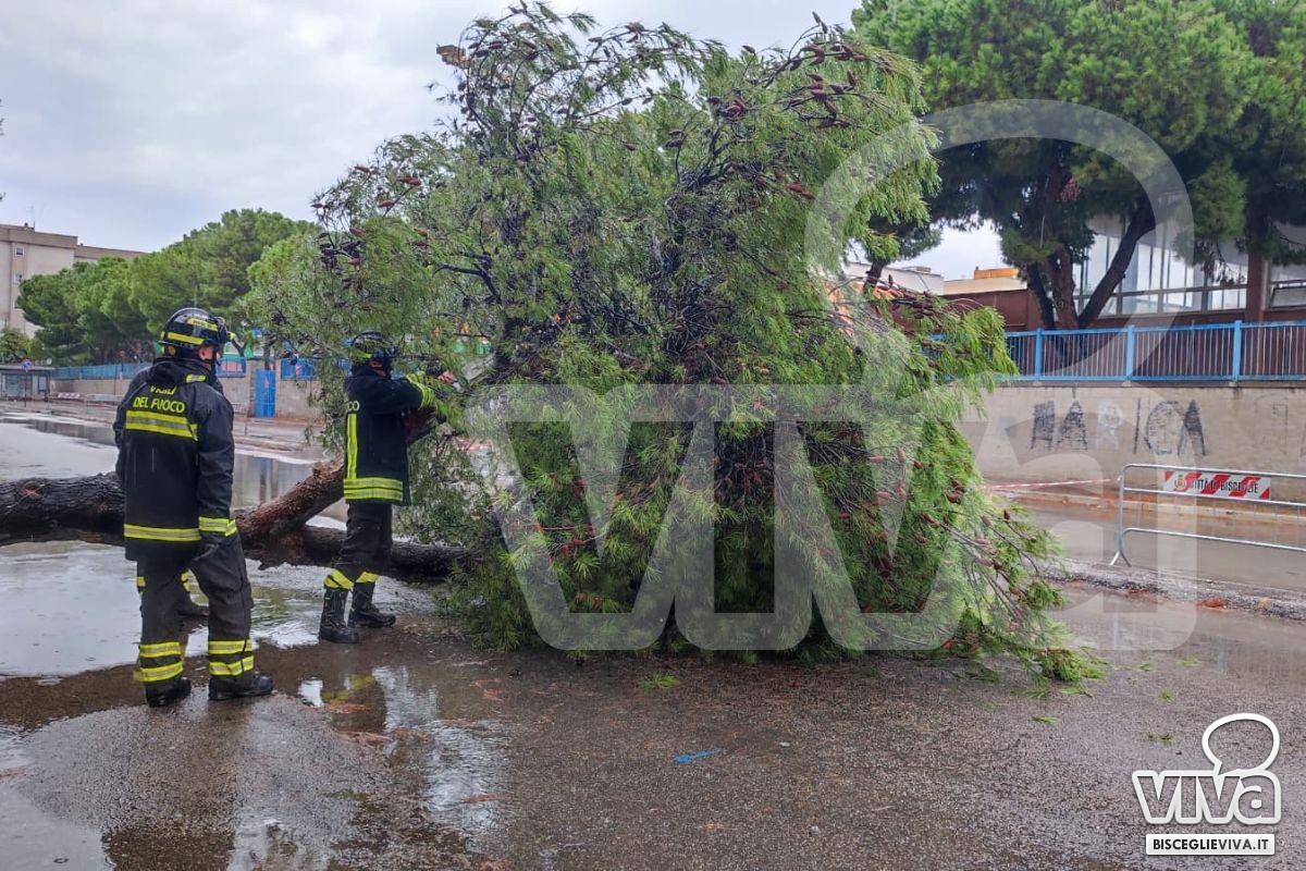A pochi giorni di distanza dal precedente episodio, un altro albero è caduto questa mattina, 5 ottobre, nei pressi della scuola Monterisi di Bisceglie, in Viale Calace, a causa delle forti piogge che hanno colpito la zona.