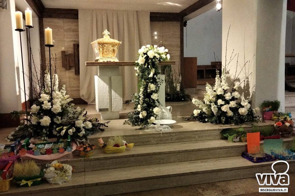 Il Giovedì Santo rappresenta da sempre un momento di profonda partecipazione per la comunità biscegliese, che si raccoglie numerosa nelle chiese cittadine per la visita agli altari della reposizione. Questi allestimenti liturgici, preparati in occasione della Messa in Coena Domini, custodiscono il Santissimo Sacramento e richiamano con solennità il gesto della lavanda dei piedi compiuto da Gesù.