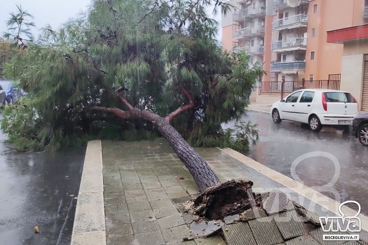 Maltempo a Bisceglie, cade un albero in via degli Artigiani