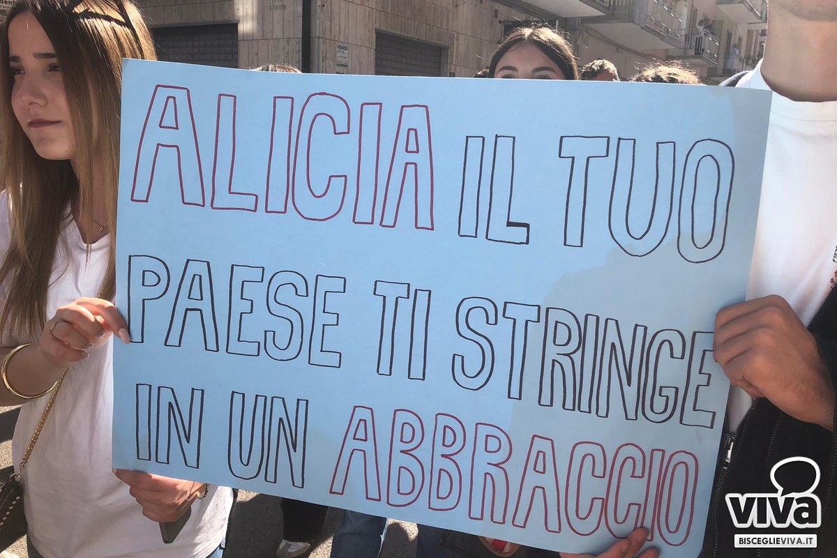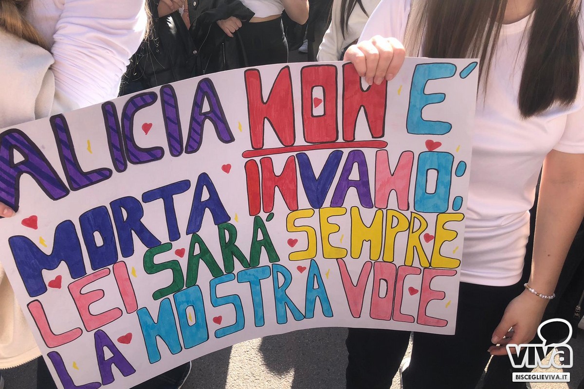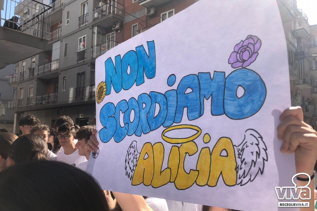 Cartelloni, magliette bianche e nessun coro: soltanto poche frasi e un silenzio carico di significato. Gli studenti delle scuole superiori di Bisceglie hanno organizzato un corteo per commemorare Alicia Amoruso, la dodicenne tragicamente scomparsa lo scorso lunedì 13 aprile dopo essere stata schiacciata da un albero in via Gaetano Veneziano.