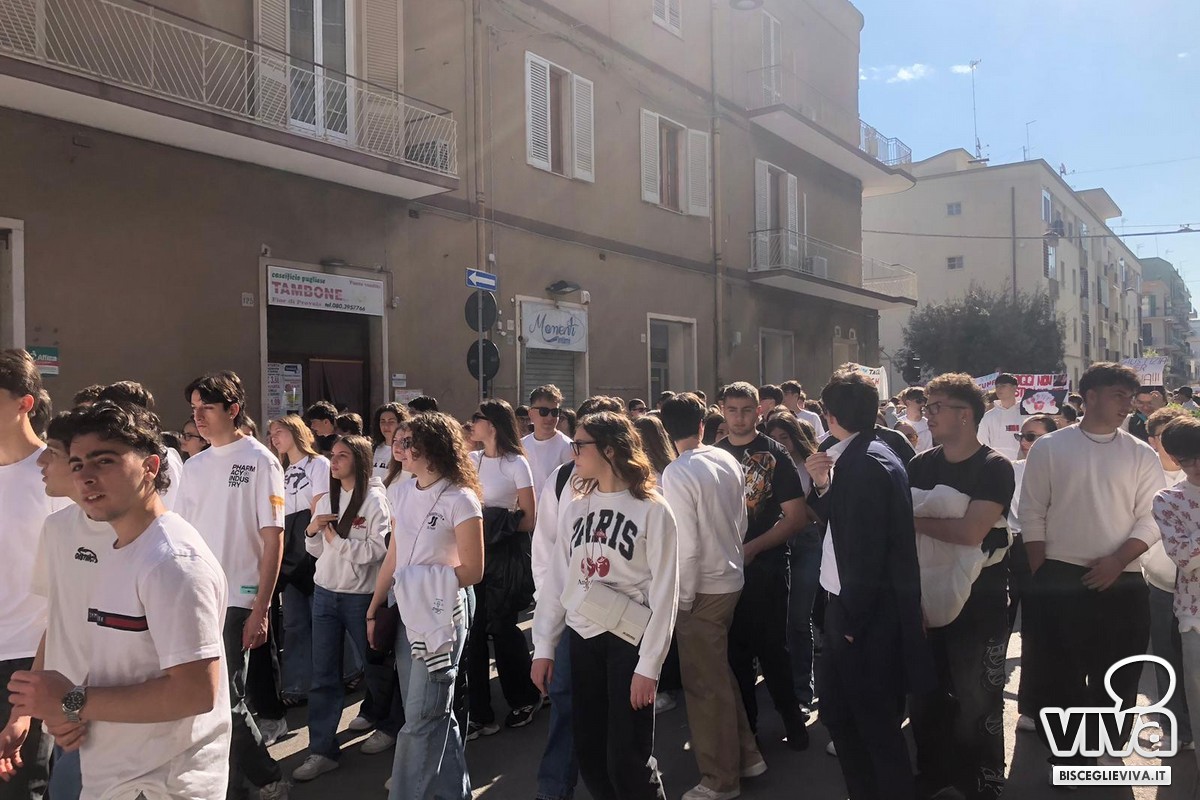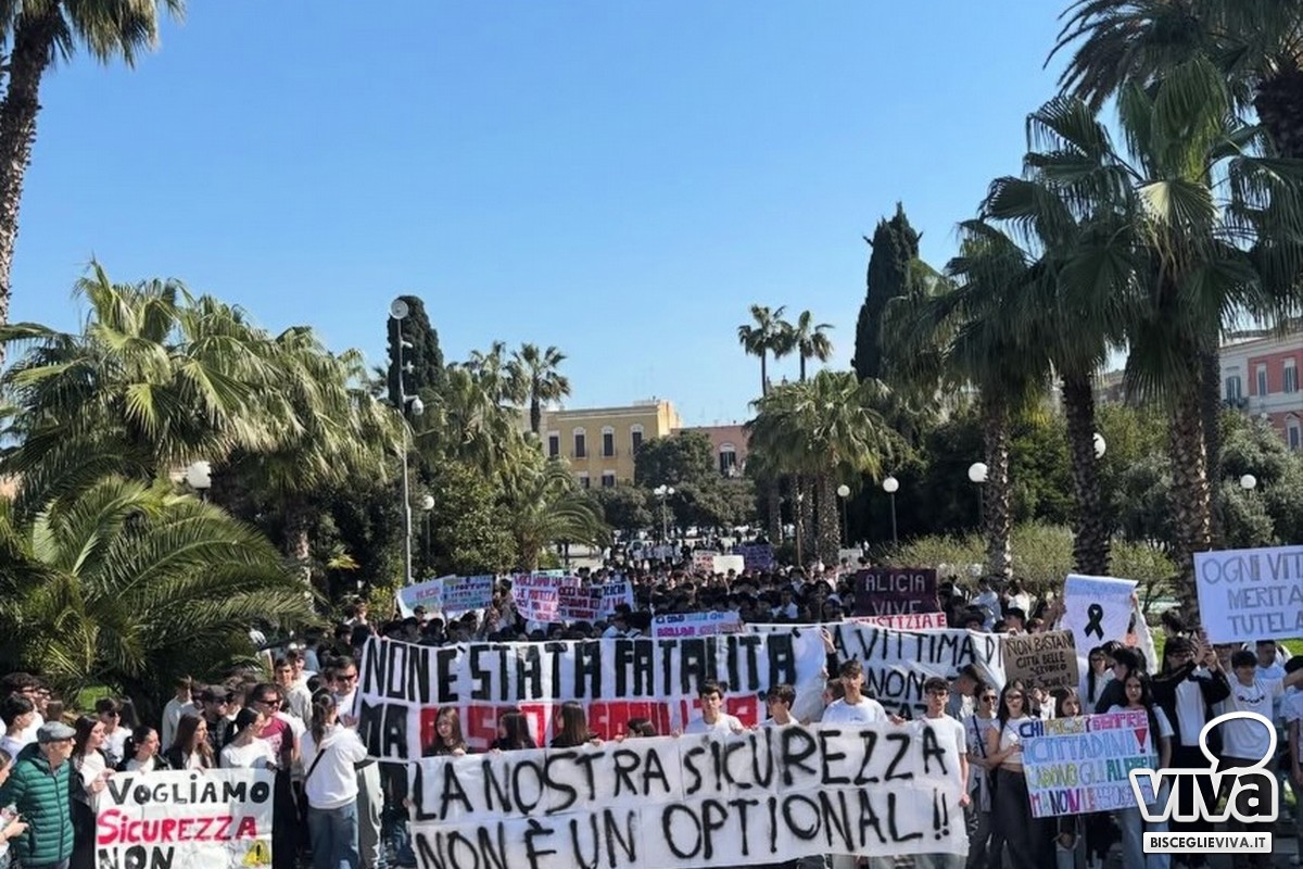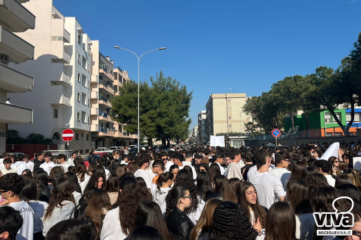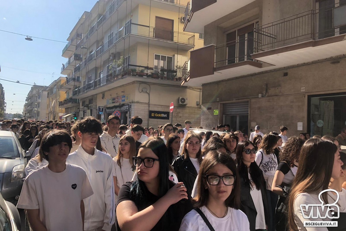 Cartelloni, magliette bianche e nessun coro: soltanto poche frasi e un silenzio carico di significato. Gli studenti delle scuole superiori di Bisceglie hanno organizzato un corteo per commemorare Alicia Amoruso, la dodicenne tragicamente scomparsa lo scorso lunedì 13 aprile dopo essere stata schiacciata da un albero in via Gaetano Veneziano.