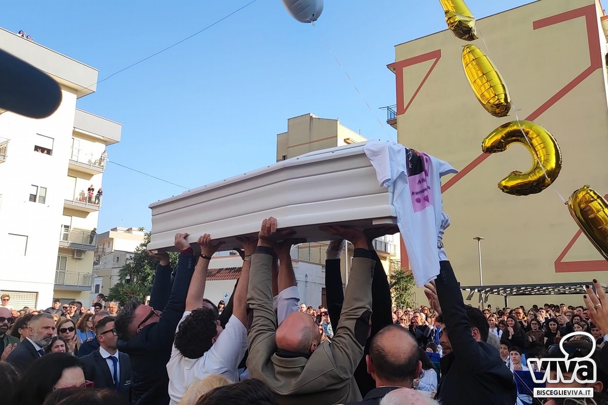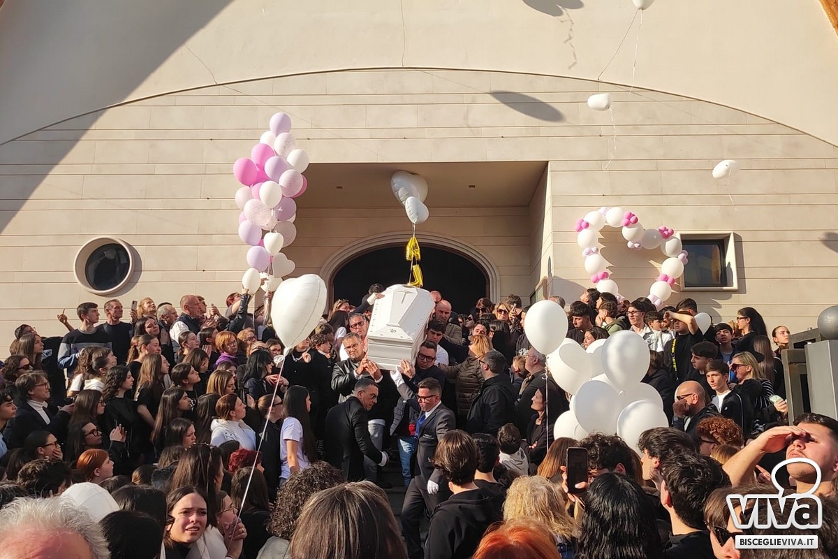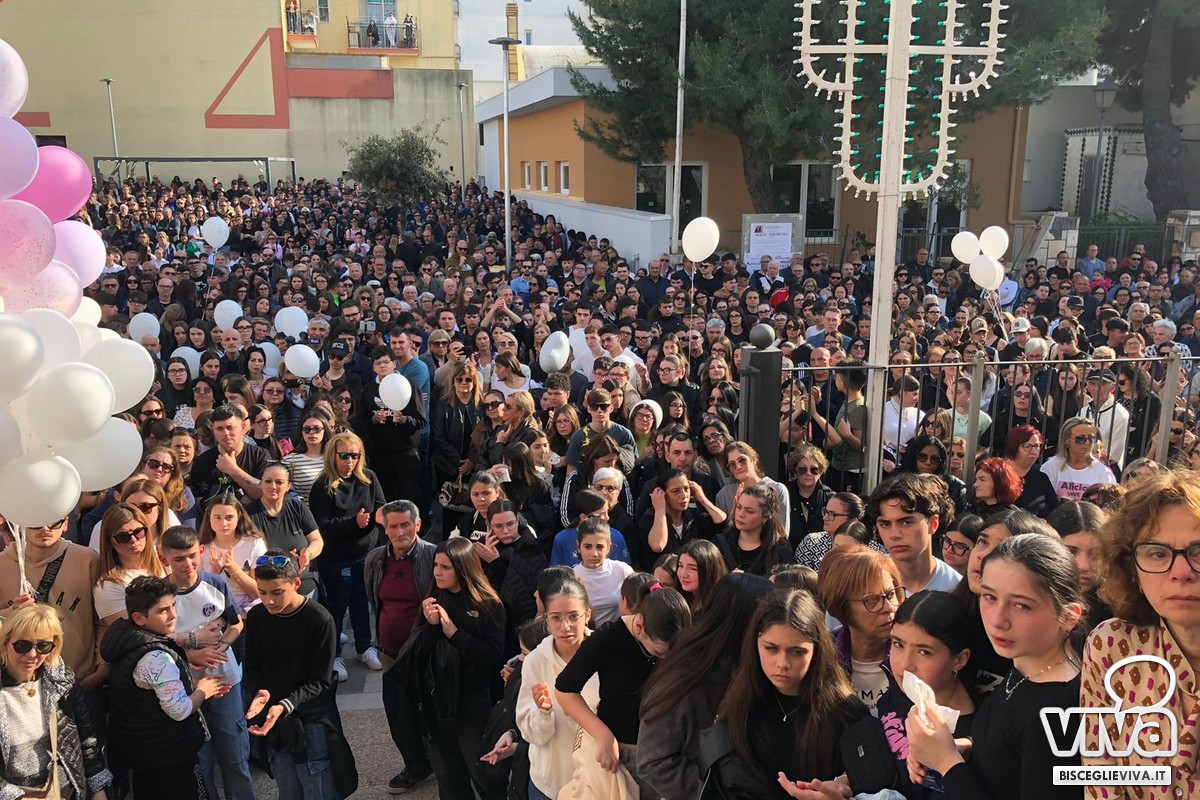 Un ultimo saluto pieno di commozione, pianti e ricordi che resteranno indelebili nella mente di chi ha conosciuto Alicia Amoruso. In centinaia si sono presentati per il funerale della 12enne biscegliese scomparsa per essere stata schiacciata da un pino in via Gaetano Veneziano: parrocchia di Santa Caterina da Siena gremita in ogni ordine di posto, con tantissimi che hanno seguito le esequie all'esterno della chiesa. L'immagine più bella ma anche la più dolorosa è stata quella di papà Claudio e mamma Margaret, rimasti accanto al feretro, bianco, durante l'intero rito: una testimonianza di come la ferita sia ancora profonda e la verità per quanto accaduto sia estremamente difficile da accettare. La madre si è lasciata andare a un pianto liberatorio durante il momento del commiato funebre, che non ha fatto trattenere le lacrime a tantissime persone: «Svegliati Alicia! Svegliati mamma» le sue urla.Le esequie sono state presiedute da Monsignor Leonardo D'Ascenzo: «Affidiamo la nostra preghiera di affidamento di Alicia al cuore di Dio, perché l'accolga come siamo certi dove non c'è più sofferenza, non ci sono più lacrime. Questi giorni per noi, per la comunità di Bisceglie e non solo, sono un tempo fragile, un tempo che ci fa sentire tutta la fragilità che accompagna la nostra vita, la nostra esperienza». All'interno dell'omelia l'Arcivescovo ha citato un'omelia inedita di don Tonino Bello, leggendo il suo pensiero: «Che cosa possono mai significare le parole umane di fronte alla tragica realtà di questa bara, al di là di una condoglianza stereotipata, al di là di una espressione cordiale e impotente compassione. Se le parole degli uomini si frantumano in fredde sillabe prive di vigore, le parole di Dio hanno il sovrumano potere di alleggerire il peso di ogni sconfinato tormento e di illuminare anche il mistero della morte».
