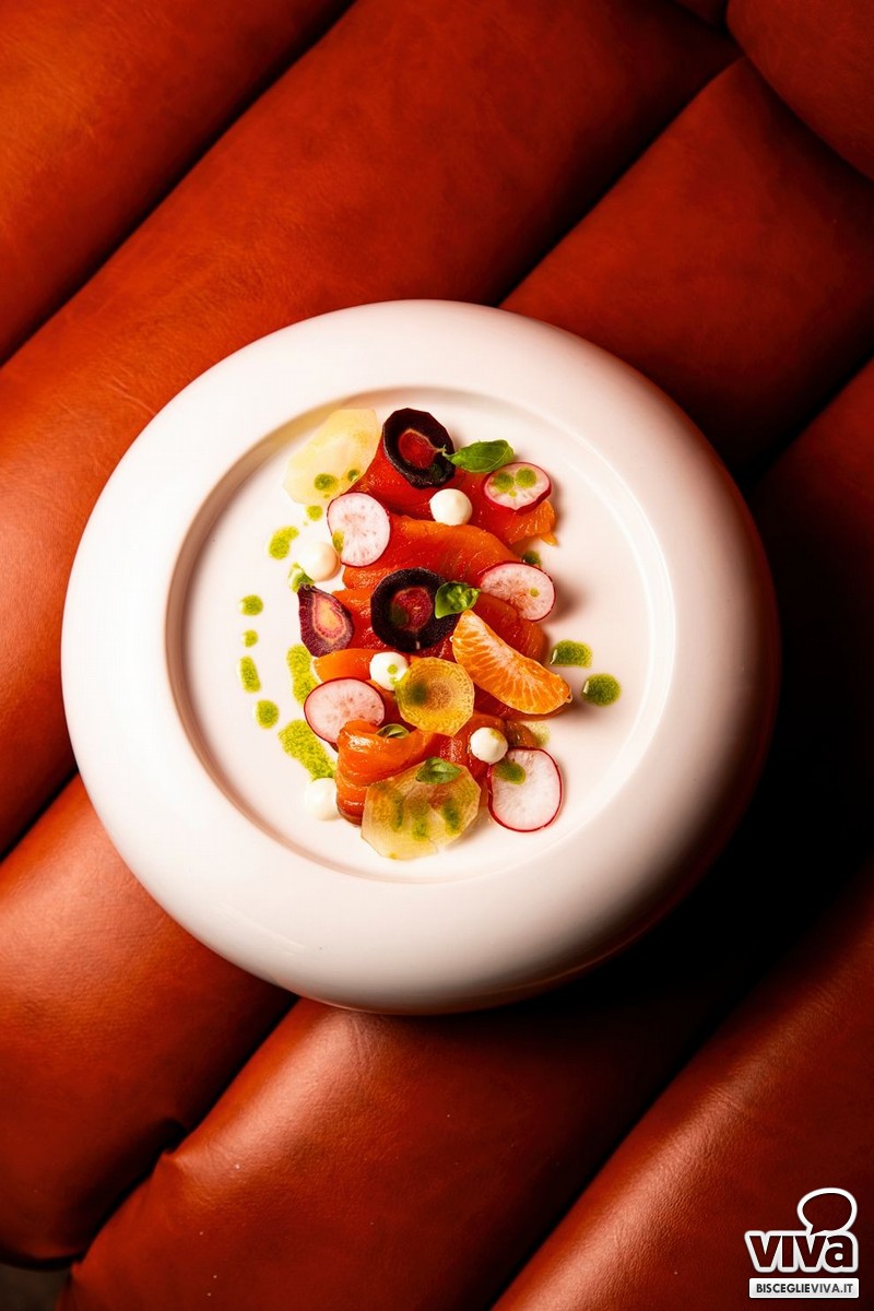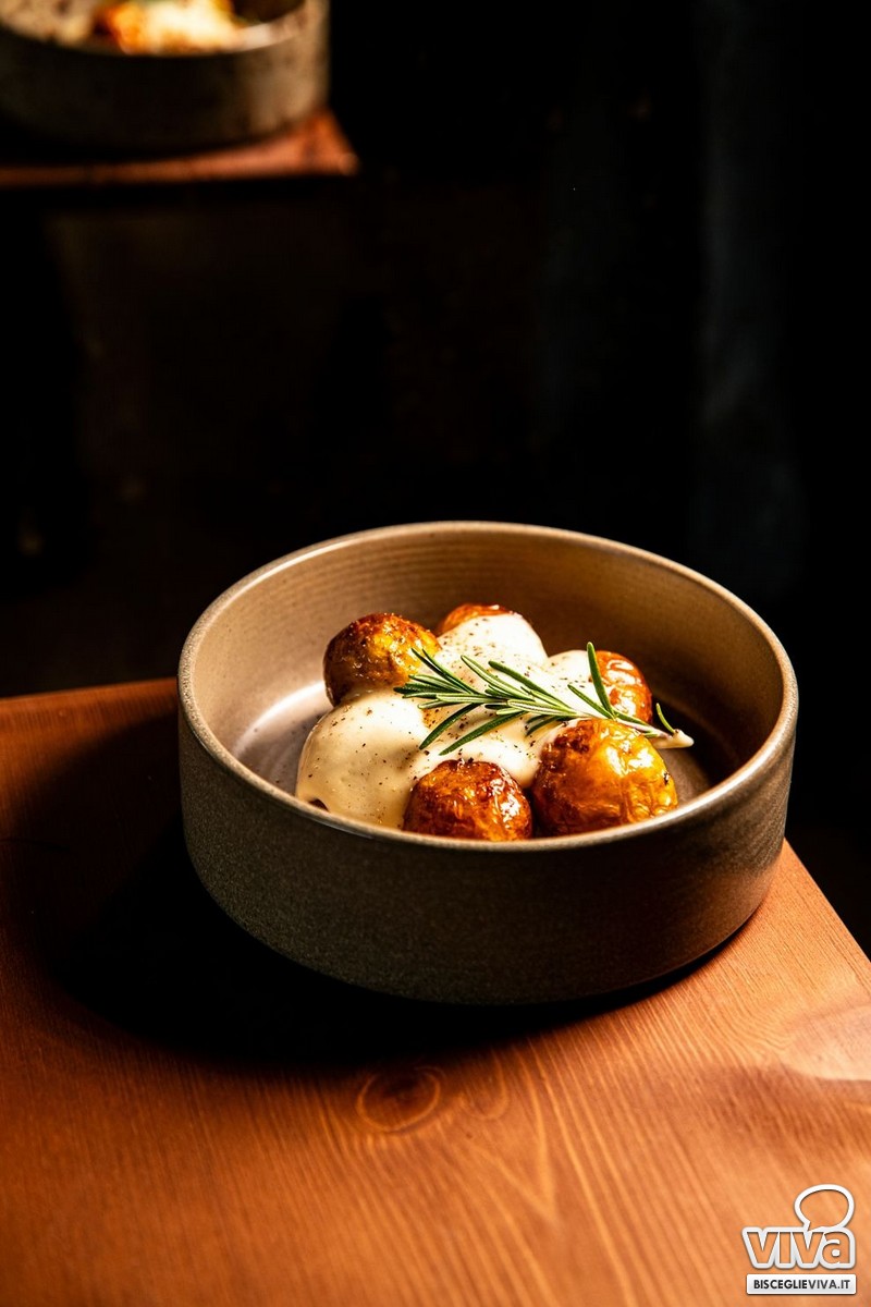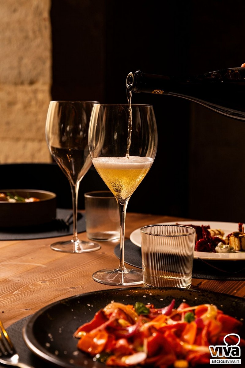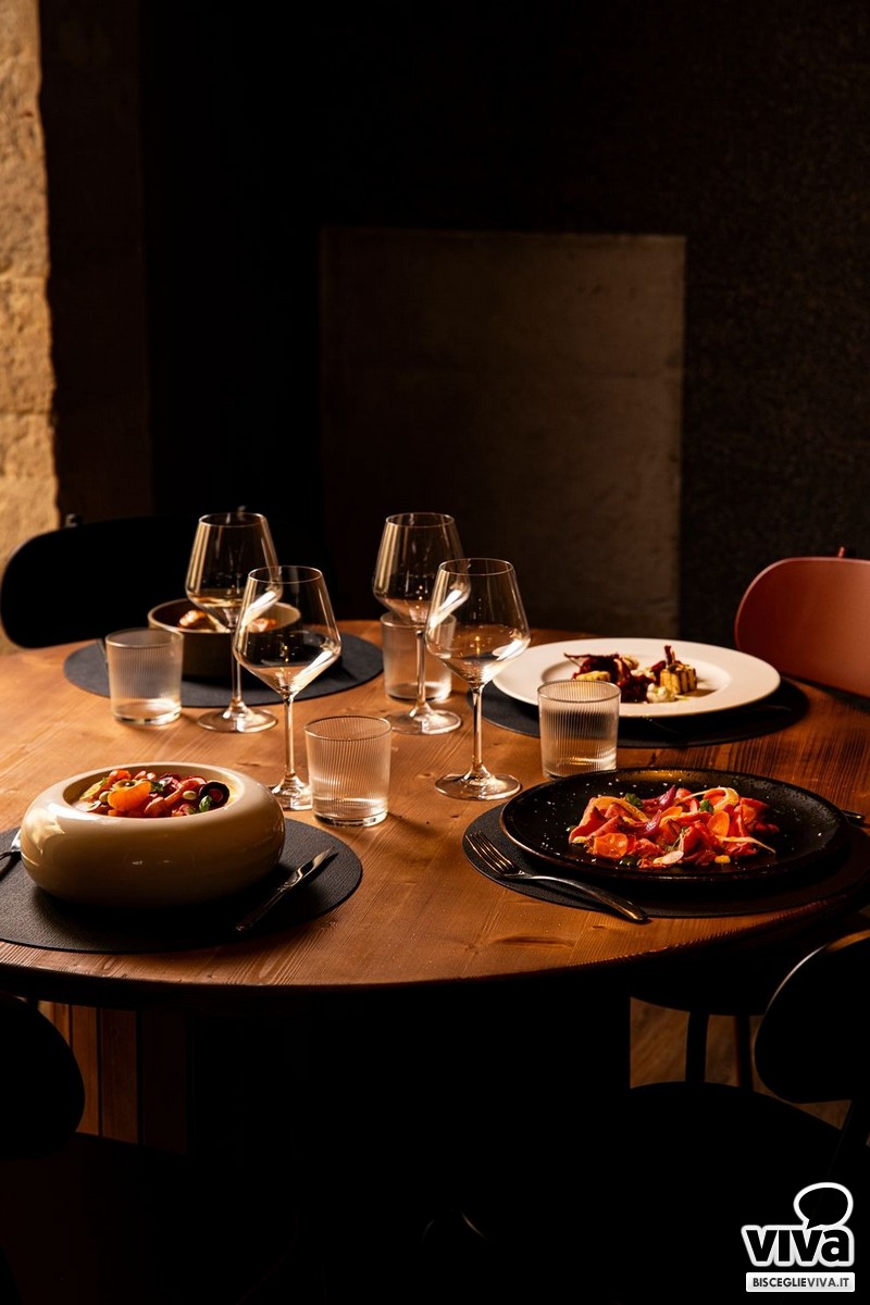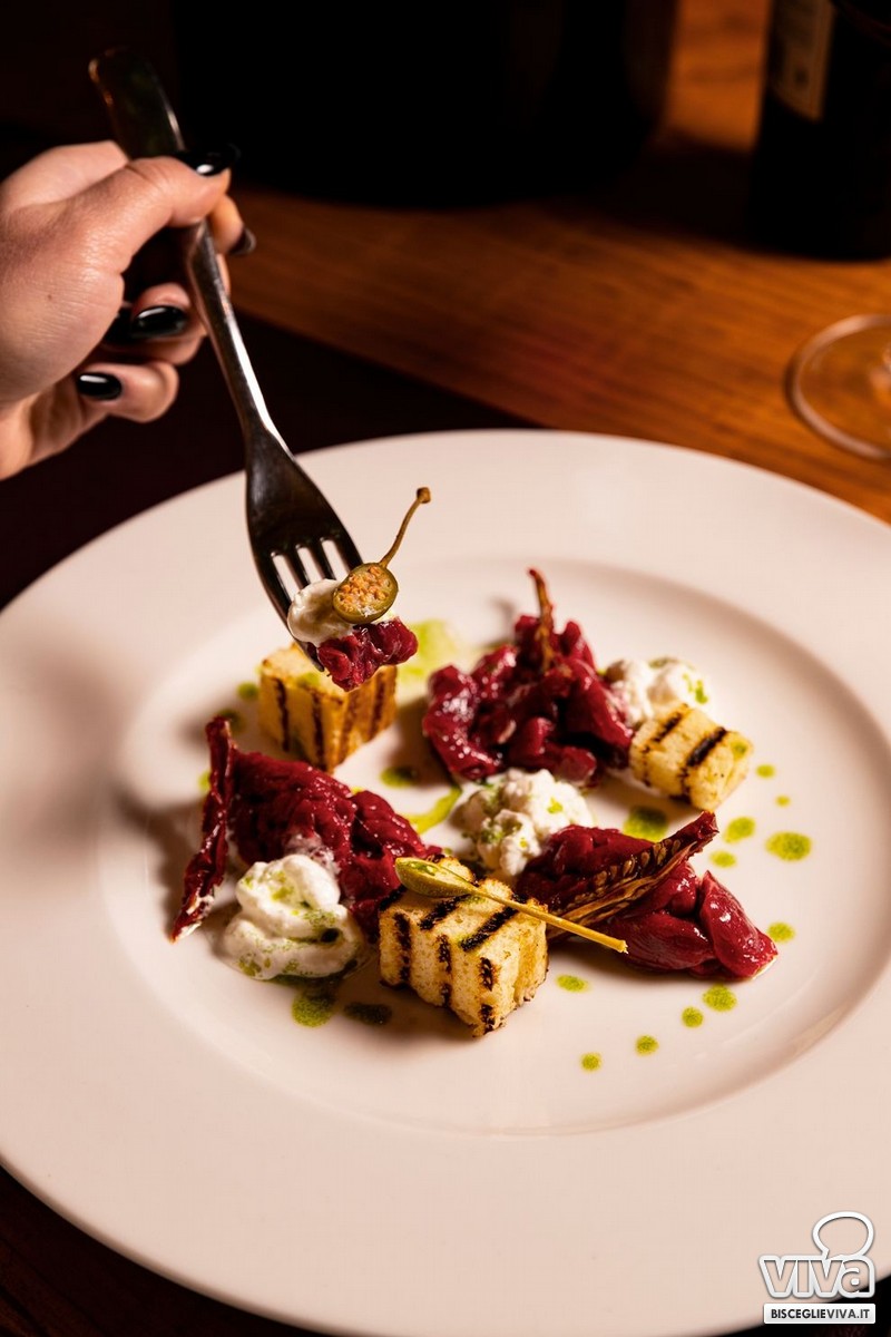 La proposta gastronomica è costruita con cura e attenzione. Si parte da piccole sfiziosità, ideali per accompagnare il vino, per poi arrivare a piatti più strutturati, con un menù che spazia con naturalezza tra terra e mare, con combinazioni pensate per incuriosire e per lasciarsi abbracciare da un buon calice scelto con attenzione.