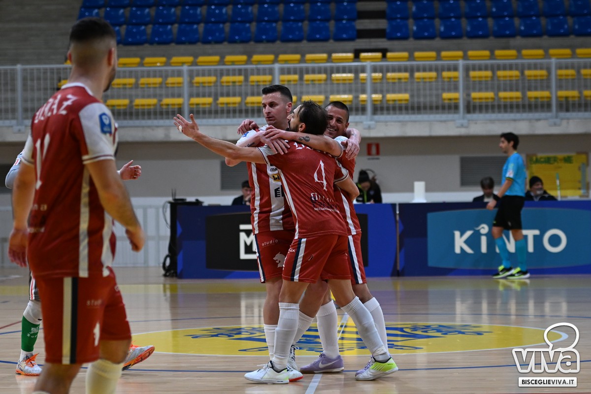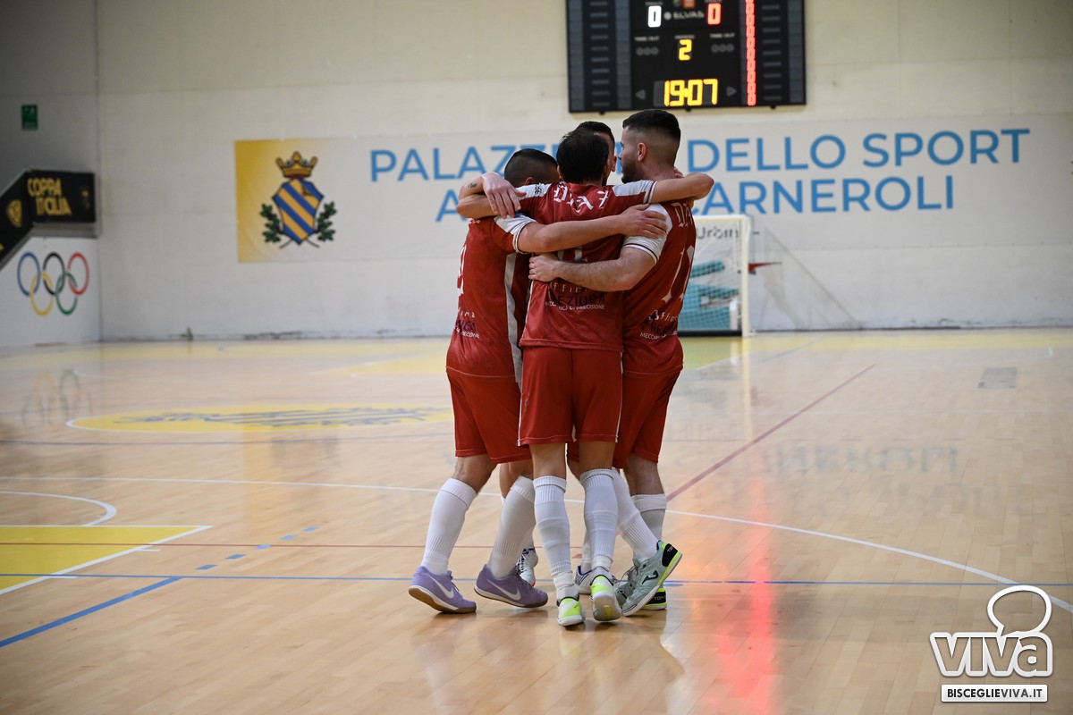 La Diaz Bisceglie ha conquistato il pass per le semifinali alla Final Eight di Coppa Italia, di scena al PalaCarneroli di Urbino in questo fine settimana. I biancorossi hanno dovuto faticare e non poco per piegare la resistenza del Superaequum, formazione abruzzese che ha giocato ben oltre la quartultima posizione in classifica che occupa in campionato nel girone F. Il team biscegliese di mister Giuseppe Di Chiano (squalificato per questa gara) l'ha risolta ai calci di rigore, con precisione dal dischetto e i riflessi dell'estremo Giuseppe Di Ciaula (due parate e una conclusione terminata invece sul palo).